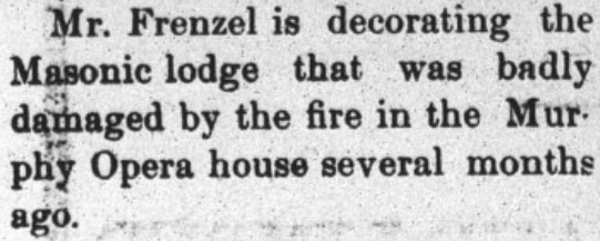 Mr. Frenzel is decorating the Masonic lodge that was badly damaged by the fire in the Murphy Opera house several months ago.