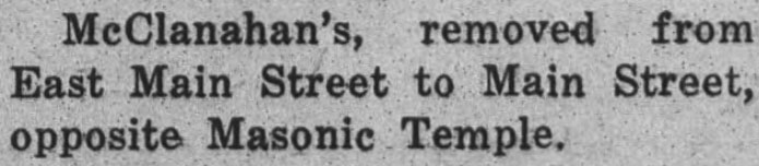 McClanahan’s, removed from East Main Street to Main Street opposite Masonic Temple.