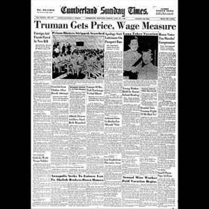 | Newspaper | Cumberland Sunday Times Cumberland, Maryland |