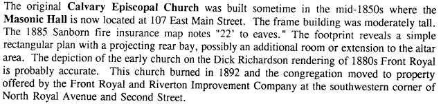 On page 91, we learn that the Masonic Hall was located at 107 East Main Street, and that prior to it’s construction, the property was occupied by the Calvary Episcopal Church built in the mid 1850’s and burned in 1892.
