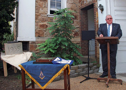 Representing Masonic Unity Lodge No. 146, Dennis Haas conducted the cornerstone replacement ceremony, pouring corn, wine and oil over the stone. The three elements represented nourishment, refreshment, joy, gladness, peace and harmony, he said.