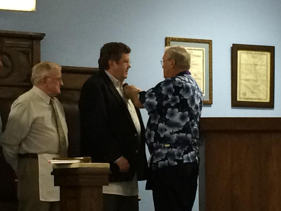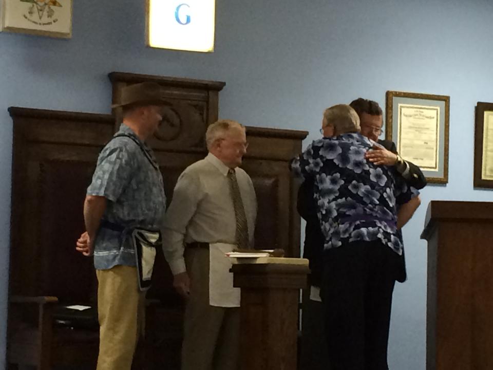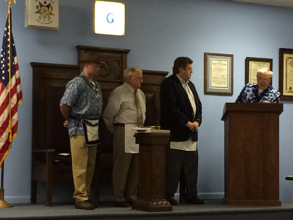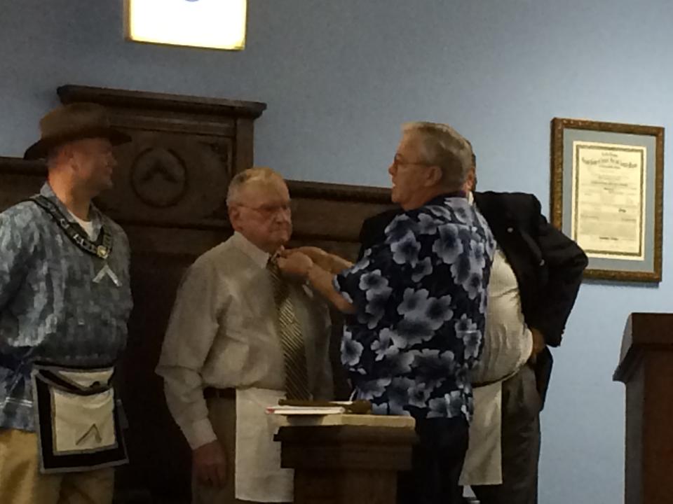 The Lodge recognized Tom Patteson and Bill Thomas with 25 year membership pins. District Deputy Governor Mickey Moats and Worshipful Master Mic Roland recognized the brothers.