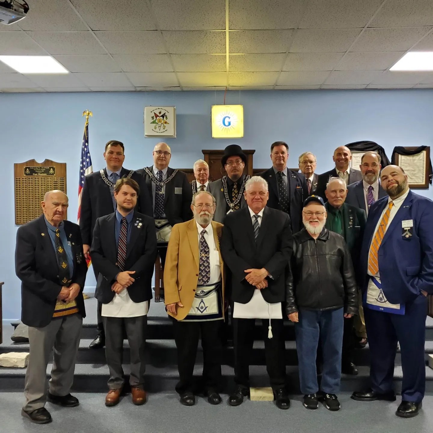 Following the solemn ceremony, the brethren of blue lodge gathered for a group photo, capturing the unity and brotherhood that defines Freemasonry. Brother Perry, now a Master Mason, stood shoulder to shoulder with his fellow brothers, symbolizing the bond that transcends individual journeys and unites them in a shared commitment to moral and ethical principles.
