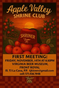 On Friday, November 14, 2025, local Nobles and Master Masons from across the Shenandoah Valley gathered at the Beer Museum for a moment many have been hoping to see return to our region—the formation of a brand-new Shrine Club: the Apple Valley Shrine Club, chartered under Kena Shriners.